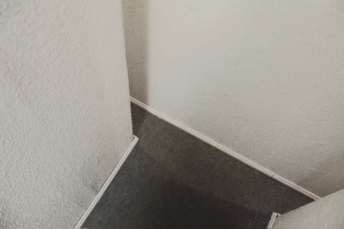 Installation: MDF, Holz, Teppich, Lampen, künstlicher Geruch (Putzmittel, Staub) u.a.