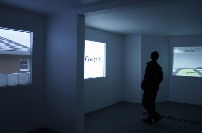 Für viele Menschen bedeutet das „eigene Heim im Grünen“ einen Traum. Die Realität sieht oft anders aus. Die Installation befaßte sich mit dem „Leben in der Vorstadt“ in seinen unterschiedlichsten Facetten. Dazu wurde in einem Ausstellungsraum die kulissenhafte Fassade der Computervisualisierung eines Fertighauses nachgebaut. Durch einen Spalt an der Seite gelangte man in das Innere des Gebäudes. In diesem erwartete die Ausstellungsbesucher*innen eine fingierte Werbeausstellung, die mittels Schautafeln, Fotos und großformatigen Videoprojektionen das Leben in Suburbia bewirbt und dabei, en passant, unterschiedlichste Aspekte beleuchtete: historische Kontinuitäten (von der Eigenheim-Ideologie der Nazionalsozialisten bis in die Gegenwart); ökologische Problematiken (Zerstörung von Natur und Flächenversiegelung); traditionelle Geschlechterrollen (der Mann als Planer und „Häuslebauer“; die Frau als Mutter, Köchin, Putzfrau). Die Ausstellung bediente sich eines Collageverfahrens, indem umfangreiches Recherchematerial zum Thema gesammelt, teilweise thematisch gebündelt, teilweise bewußt dekontextualisiert wurde. Auch die Installation selbst, der Nachbau eines Fertighauses in Originalgröße, entlarvte sich beim Verlassen auf der Rückseite als dünnwandige, aus Styropor gebaute Kulisse.