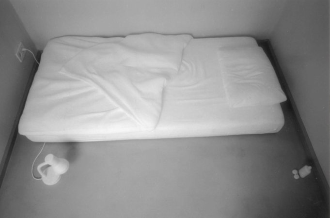 Die Arbeit Zimmer auf Zeit entstand während eines mehrmonatigen Aufenthaltes in London. Das Kopfkissen wurde per Hand mit Messer und Schleifpapier nach einem realen Vorbild aus Styropor gefertigt. Später, zurück in Deutschland, folgte die Matratze und weitere Utensilien, die während des Aufenthaltes eine Rolle gespielt hatten. Gezeigt wurde die Arbeit in einem eigens hierfür errichteten Raum, einer Art Container, der frei im umgebenden Ausstellungsraum steht. Im Inneren ist der Container mit Styropor verkleidet, die Wände weiß, der Boden hellgrau, um den unwirklichen Charakter der Szene, die wie aus einem seltsamen Traum oder einem schwarz-weiß Foto entnommen scheint, zu verstärken.