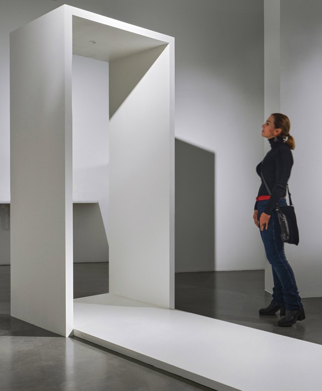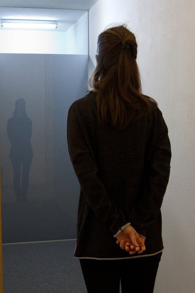 What interests me about the piece “YES”, the way it is being presented here, within the context of this exhibition, is that it evokes ambiguous thoughts and feelings, but ultimately leaves me in the dark as to what it actually is or wants from me. When entering the exhibition, I am irritated. This white box stands in my way, right at the entrance, like a lock: Is this a minimalist art work that I am not allowed to touch or enter, as usual in a museum? Or a security check? Should I go through it? Maybe I even have to! Suddenly a voice appears, loud and emphatic it says “YES”. But yes to what? To go through, to go around? Or to me in general, as a person? I go on. Look at the exhibition. And only gradually, with the passing of time, I realize: the voice coming from the object is not interested in me at all. It follows its own tact. Its own cold logic, which is not the one of the individual…