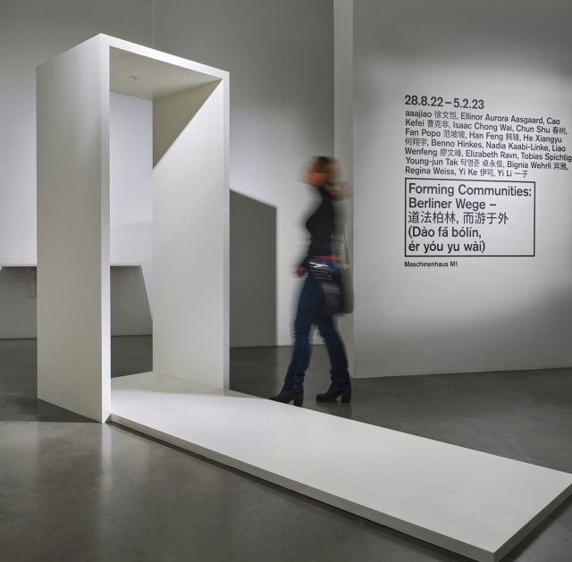The piece “YES” is somewhat anonymous. And so is its authorship. It was not so much created by me, the artist, but rather by its surrounding – its placement right at the entrance of “Forming Communities”. The exhibition curators’ concern is to present Chinese artists based in Berlin and their artistic network; as well as to stimulate reflection on political and social issues may it be in China or over here, in Germany. However, while working on “YES”, I personally often had to think of something less concrete… Franz Kafka’s “gatekeeper parable”. This story in which a man, who seeks for justice, stands in front of the gate of law and waits. Eventually, he is old, about to die. With his last breath, he asks why he was never let in. The gate keeper replies: “Well, you never tried to go through!”