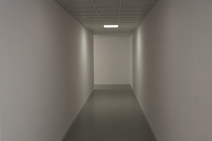 Image above: Waiting room / Version below: waiting room with long corridors; at each side one: corridor for entering and corridor for exiting